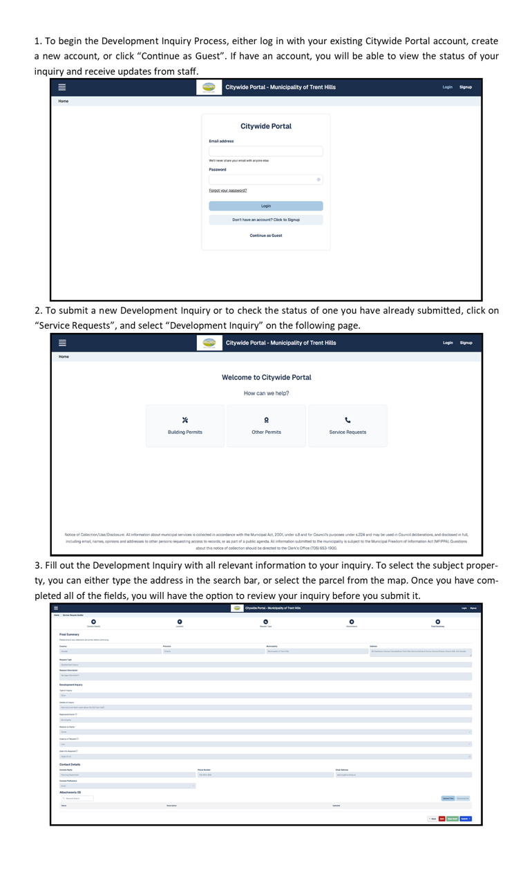 Hard copies of the Development Inquiry Form can still be submitted to the front desk of the Municipal Office.